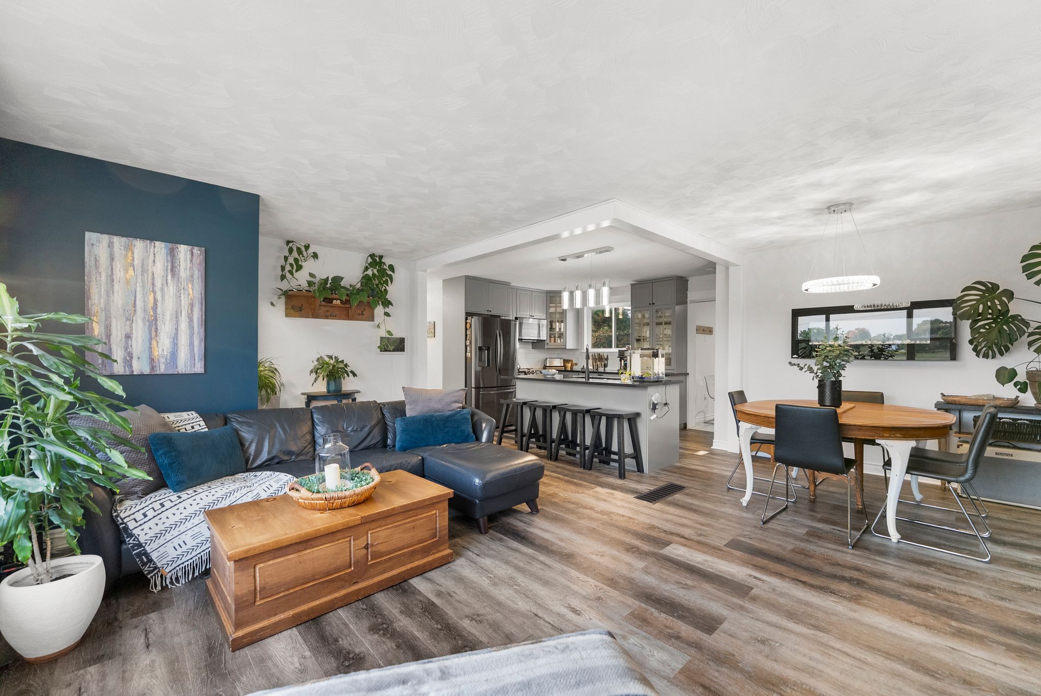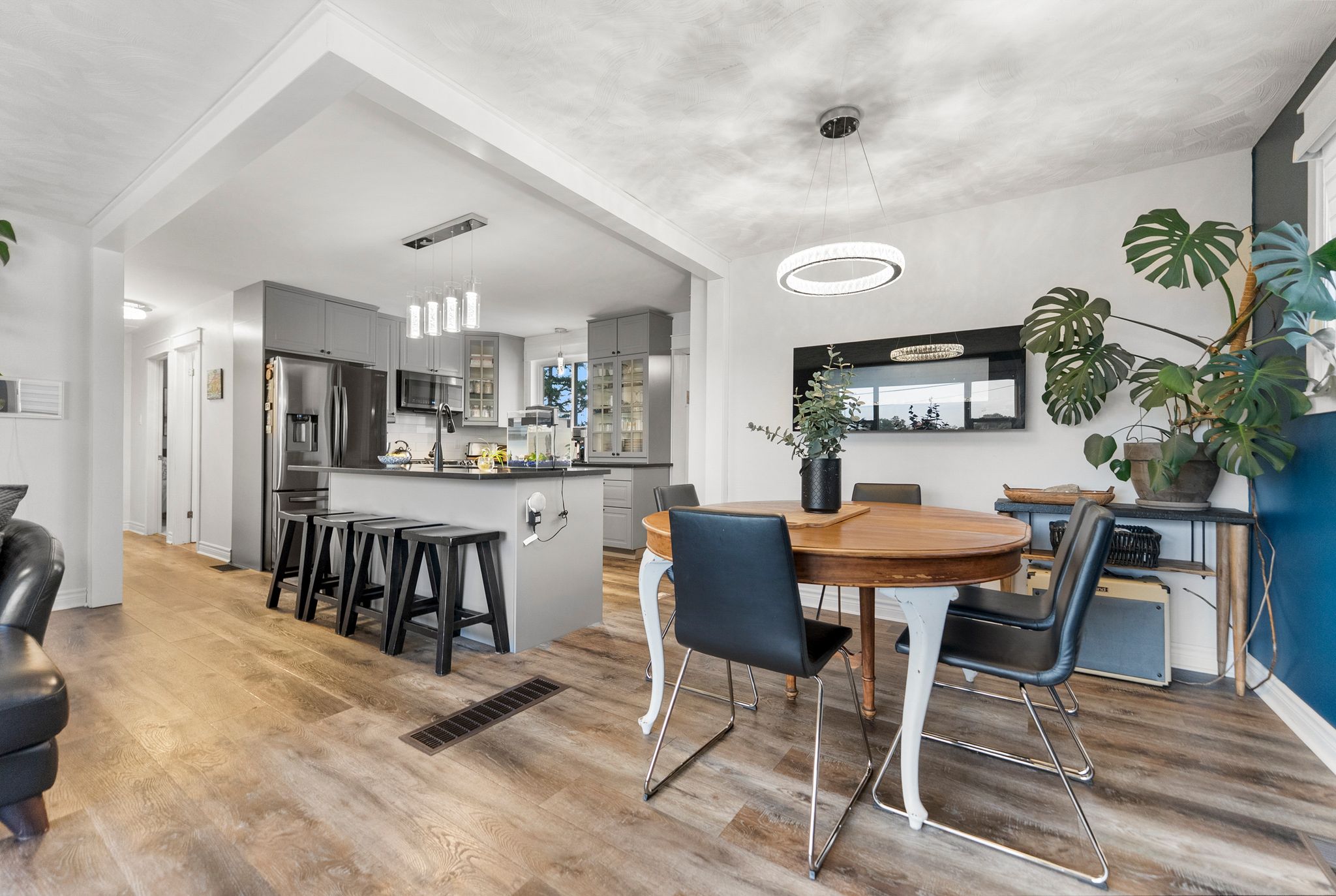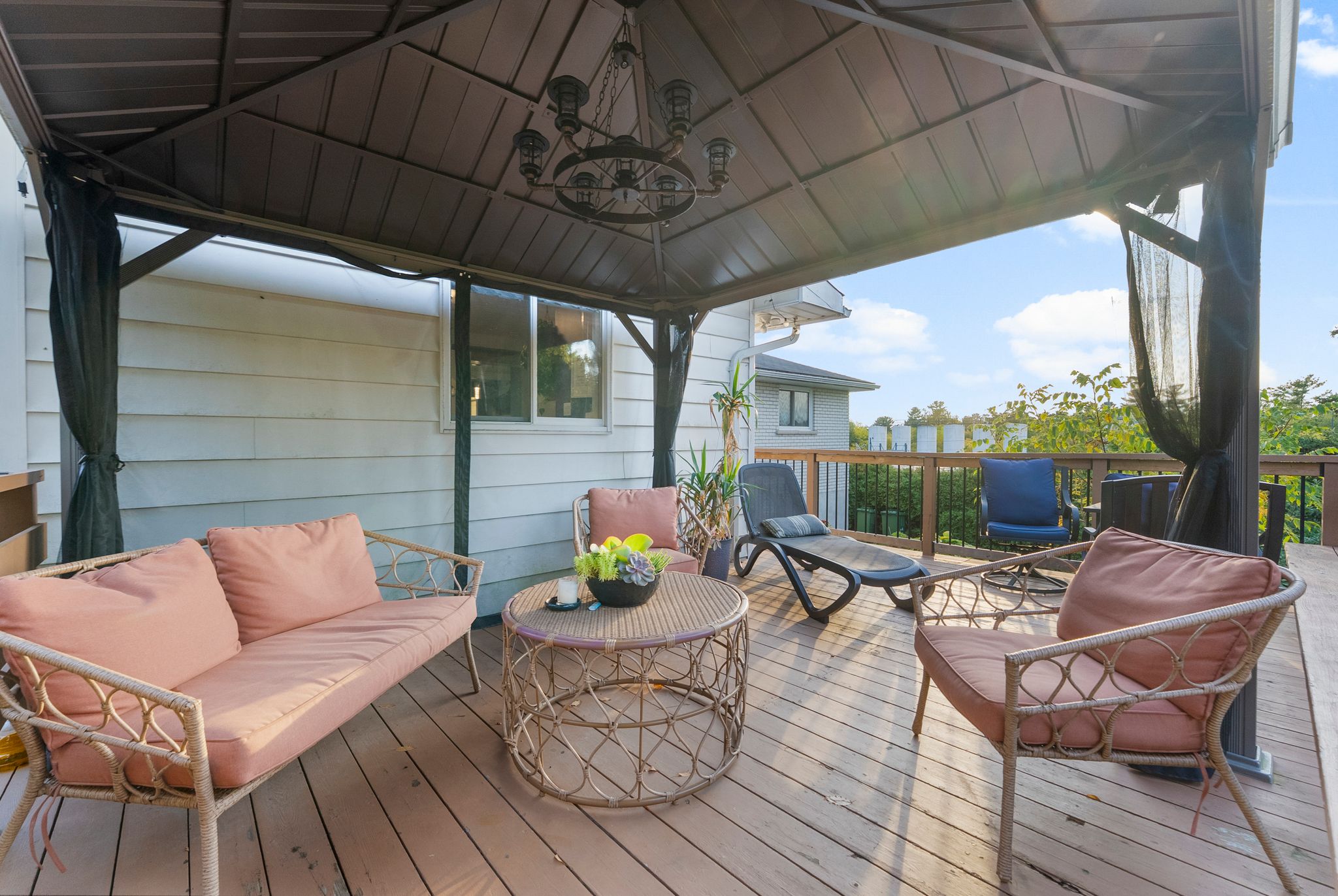 Welcome to this beautifully maintained and private bungalow, thoughtfully updated inside and out. Recent improvements include new parging (2025), a fully finished basement (2024), and a stylishly renovated kitchen and main bath (2021) – to name a few. The inviting open-concept design seamlessly connects the living, dining, and kitchen areas, creating the perfect space for family gatherings and hosting. Large windows fill the home with natural light, complementing the modern finishes throughout. The main level offers a 4-piece family bath and three comfortable bedrooms, with the flexibility to create a 4th bedroom or home office. Convenient inside access from the garage leads to a fully finished lower level. Here you’ll find a spacious rec room, ample room for storage, laundry room and a 2-piece powder room. Step outside to your private backyard oasis featuring a large deck and gazebo, landscaped gardens, mature trees and a peaceful setting that’s perfect for relaxing or entertaining. Conveniently located close to the hospital, schools, and other amenities, this home offers both comfort and practicality. This is a move-in ready home where pride of ownership shines.