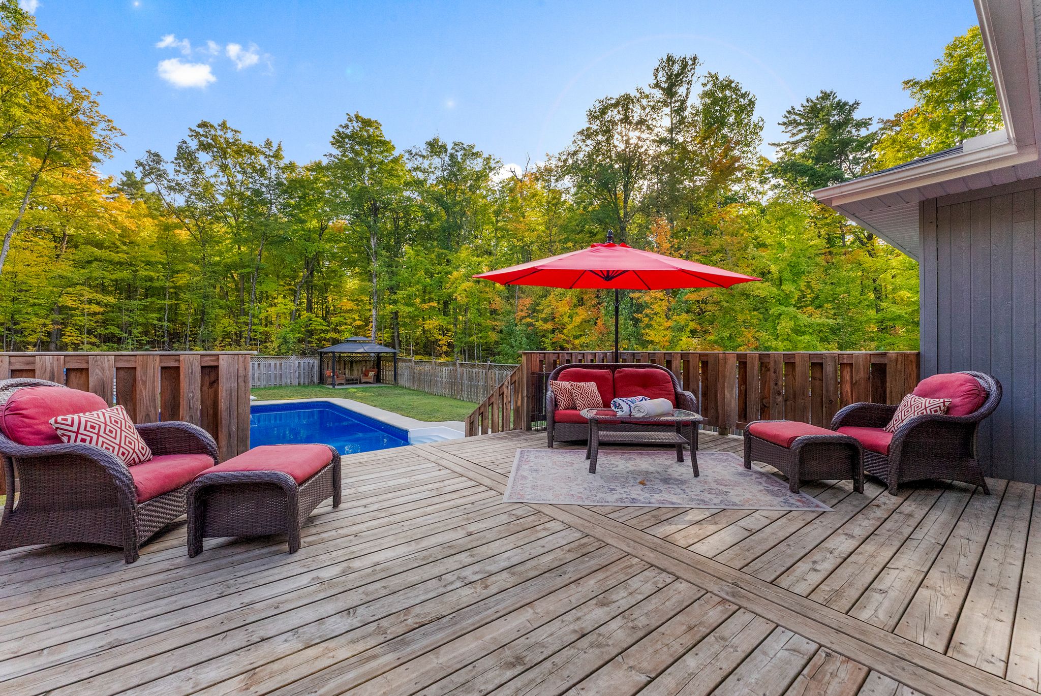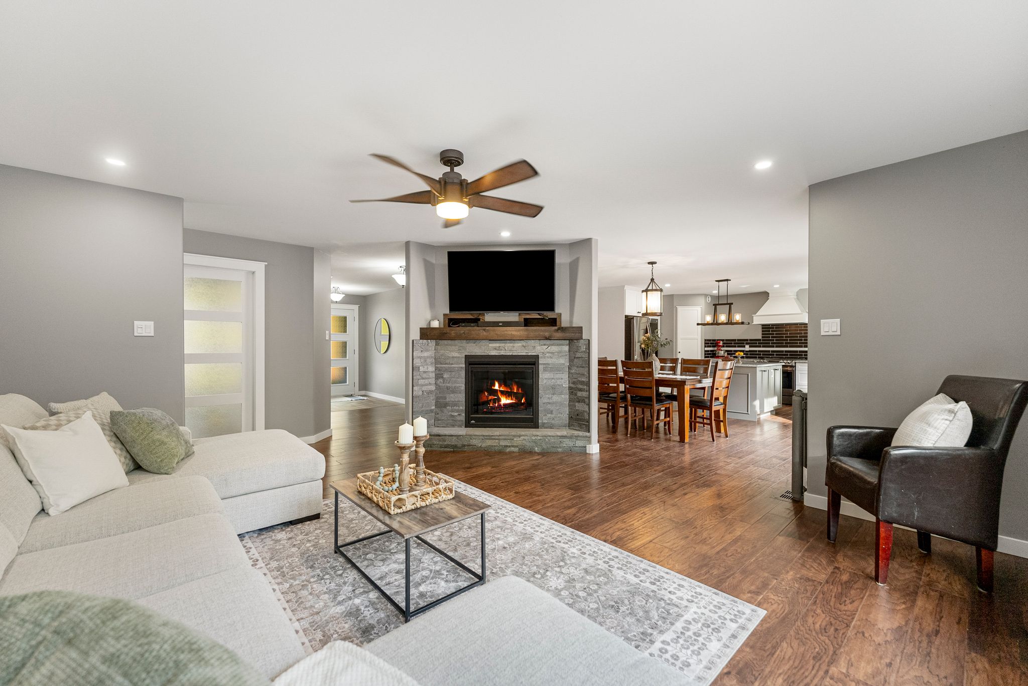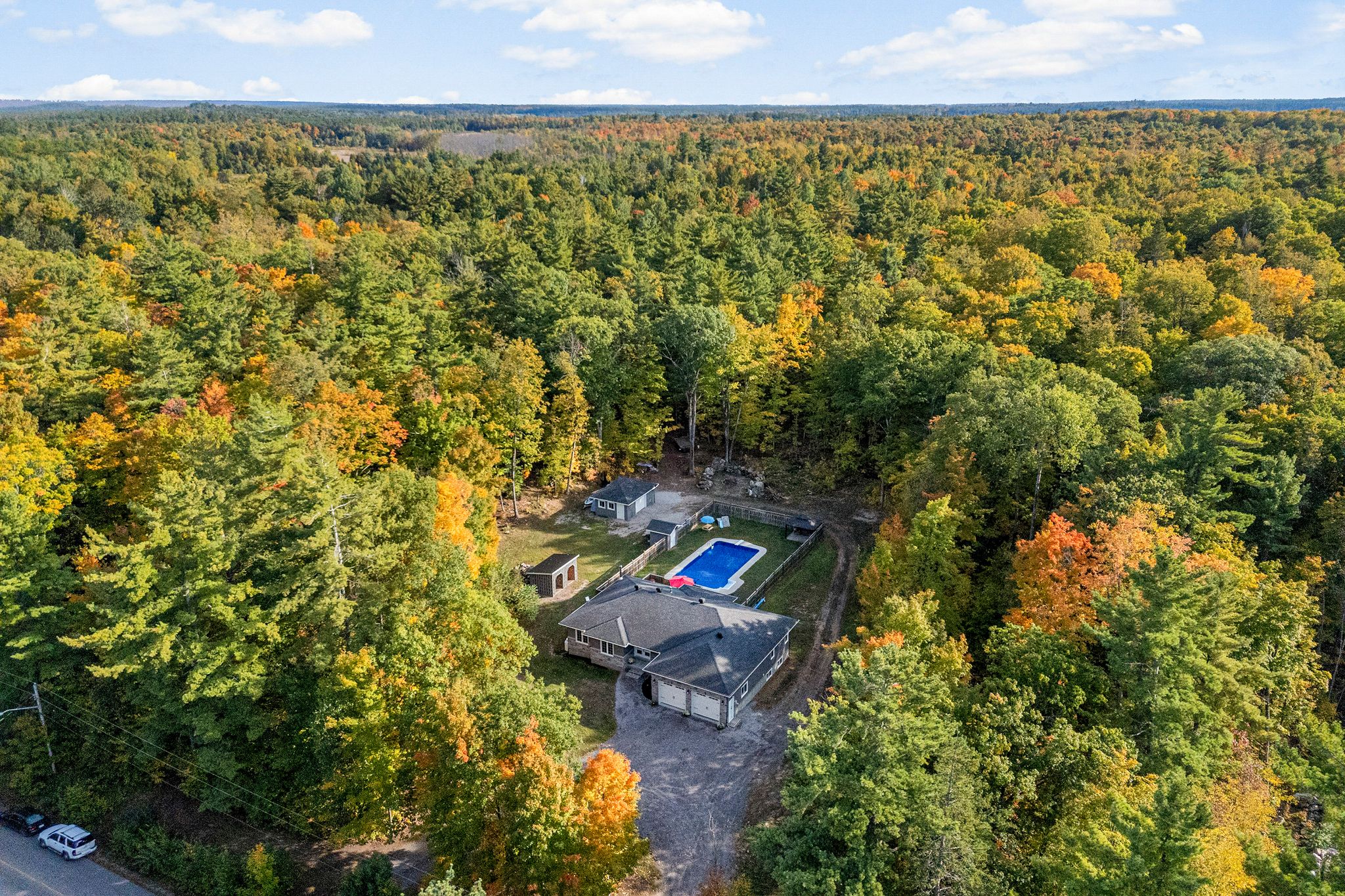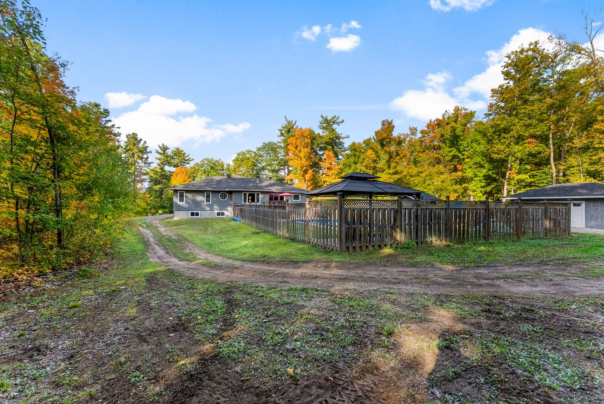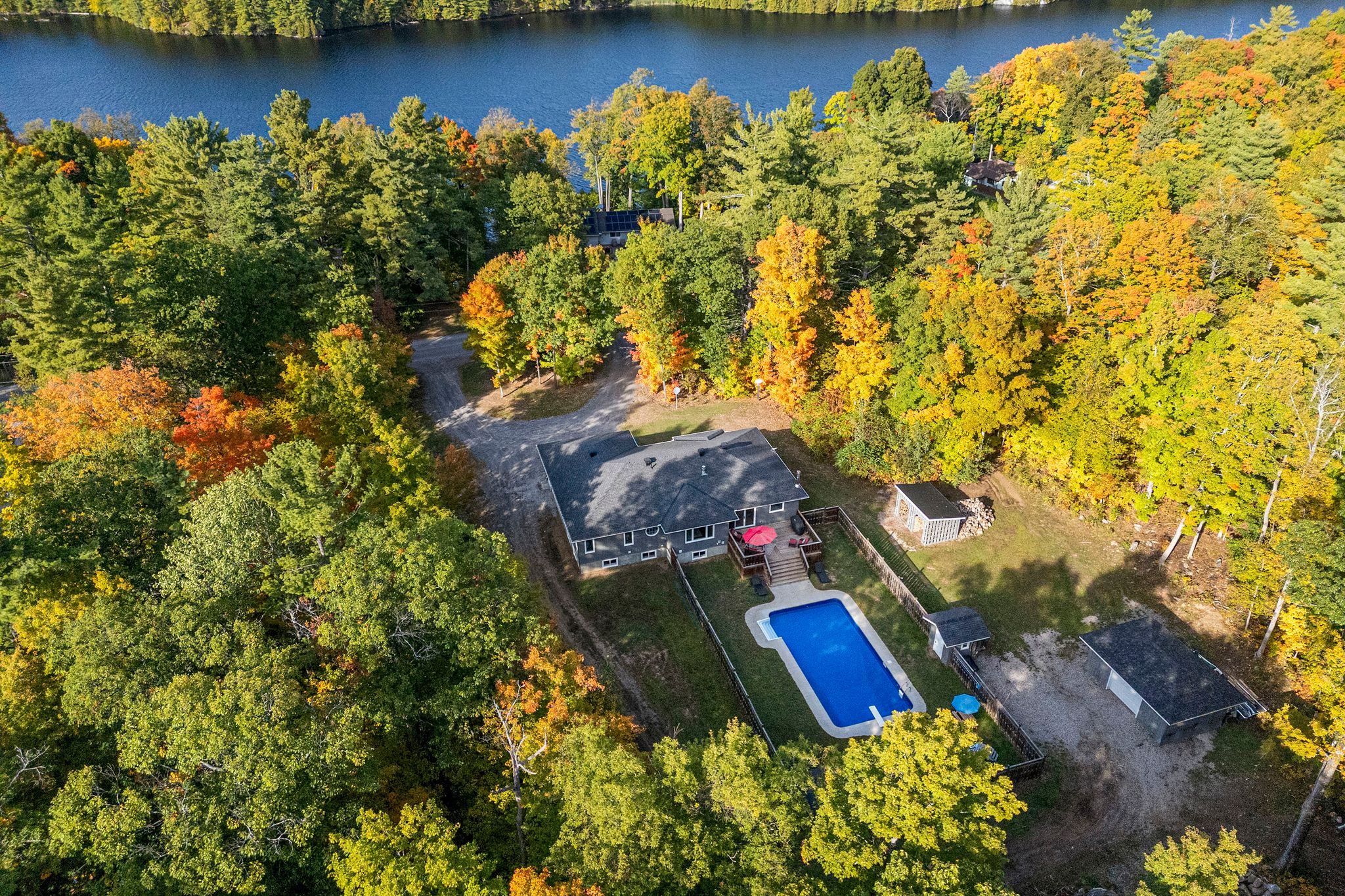 Stunning bungalow set on just over 2 acres, surrounded by mature trees and complete privacy, with water access to the Madawaska River only a short walk away – perfect for swimming, boating, and fishing! Offering over 4,000 sq. ft. of living space, this property is also ideally located just 15 minutes to Arnprior, 30 minutes to Kanata and 10 minutes to Hwy 17 for easy commuting. Step into the spacious foyer with a large coat closet, leading to an inviting open-concept layout filled with stylish finishes. The main floor features engineered hardwood and tile throughout, with a kitchen, dining, and living room designed for both family living and entertaining. The custom kitchen showcases a walk-in pantry and custom soft-close cabinetry, while the cozy gas fireplace and expansive windows create an airy, light-filled atmosphere that seamlessly brings the outdoors in. The main level offers three bedrooms and two full baths, including a serene primary suite with a walk-in closet and luxurious ensuite with in-floor heating. Convenient main floor laundry with access to the garage and ample storage! The fully finished lower level boasts 9-ft ceilings, two additional bedrooms, a large family room, games area, and a beautiful 3-piece bath. The woodstove not only supplements heat but adds a warm ambiance in winter months. Car enthusiasts and hobbyists will love the attached 2-car garage along with a separate 1-car garage providing ample storage for boats, recreational vehicles and more. Outdoor living is at its finest with direct access from the dining area to a large rear deck, overlooking the 40 x 20 heated inground pool and fully fenced area – an ideal space for children and pets – a true oasis! With quick access to nearby trails for snowmobiling and ATVing, this property combines year-round recreation with everyday convenience and offers not just a home but a life style. An exceptional home in a highly sought-after location.