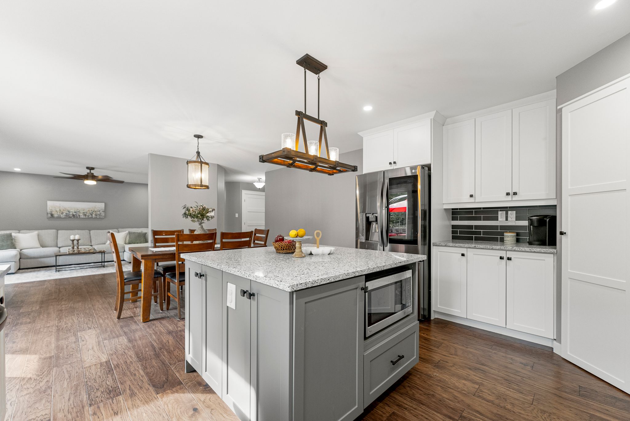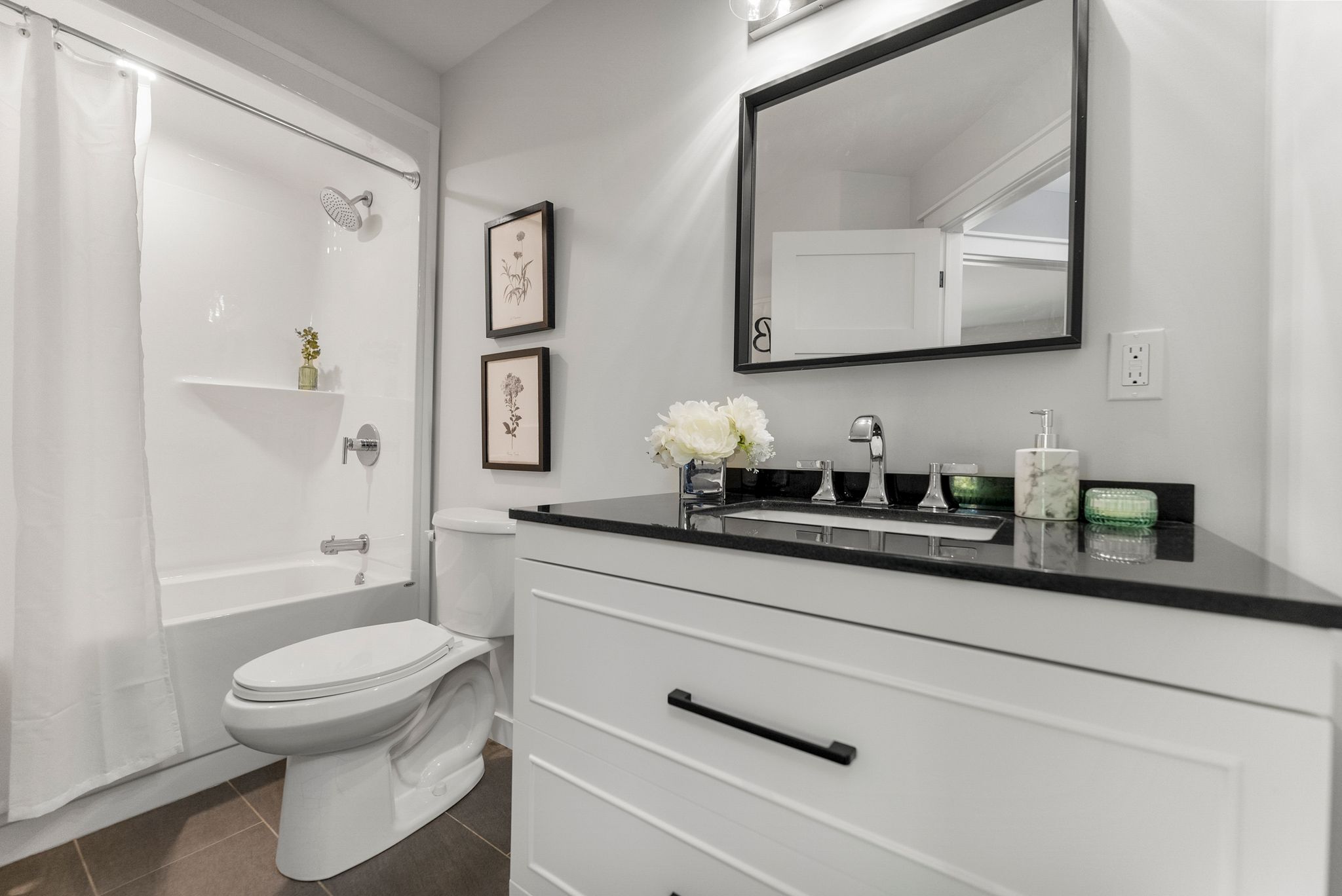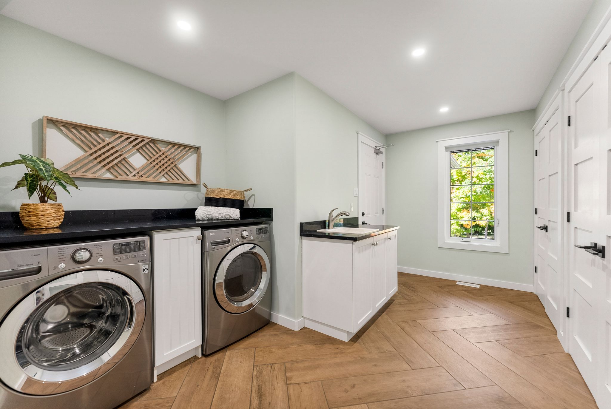Floors: Engineered Hardwood, Tile, Carpet