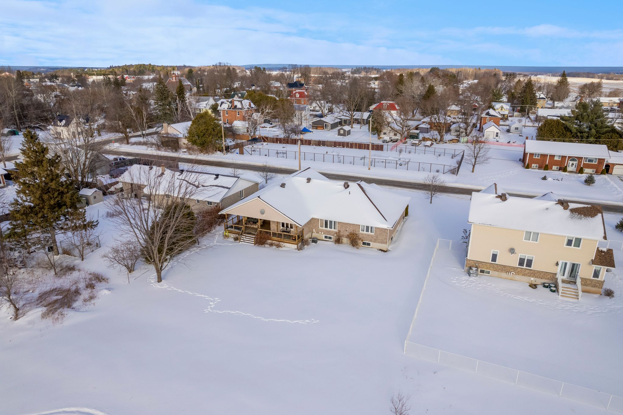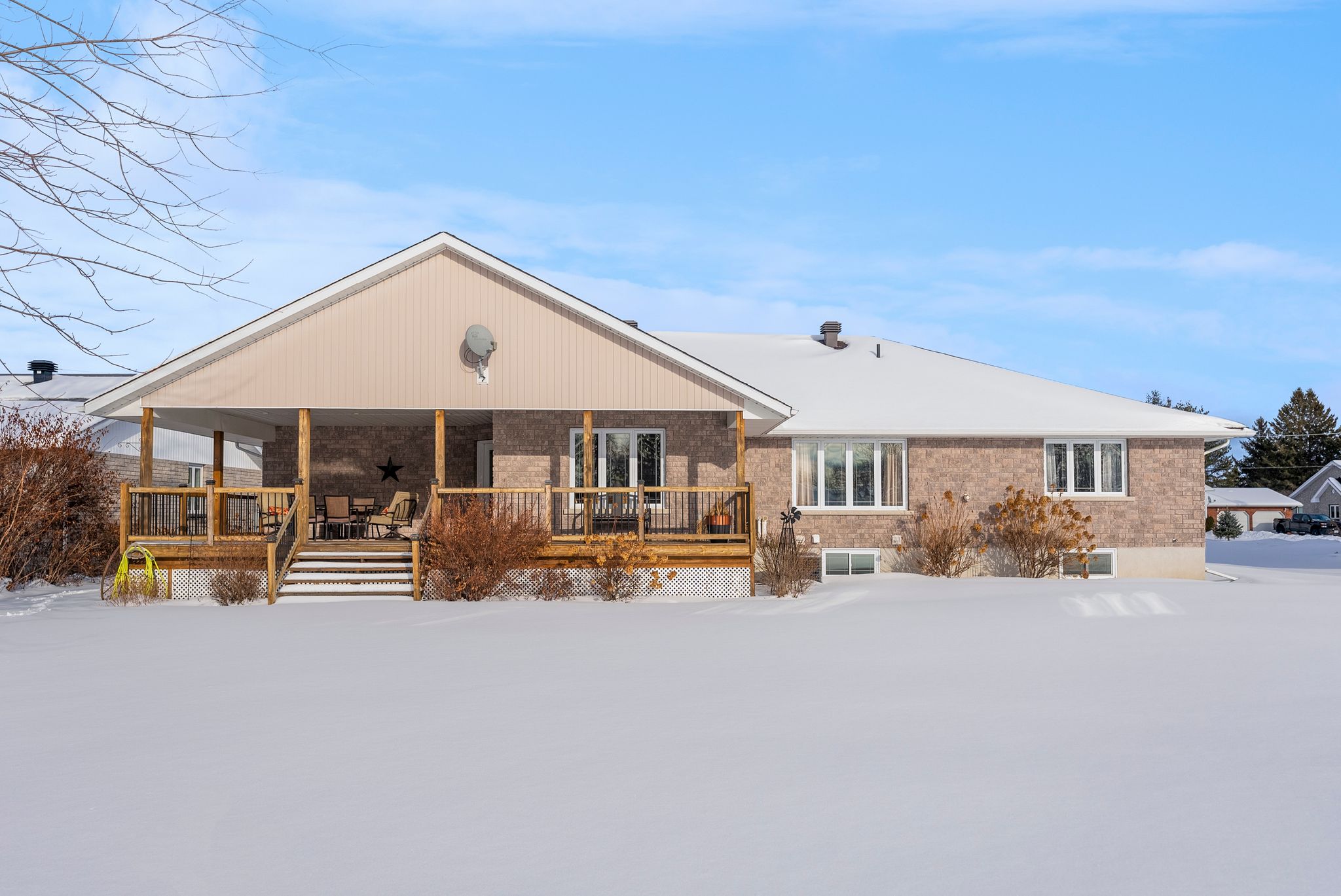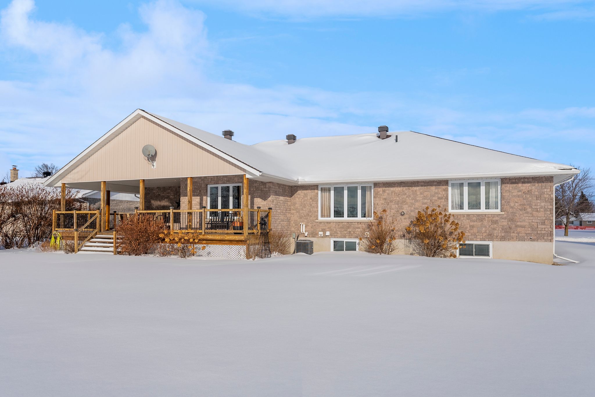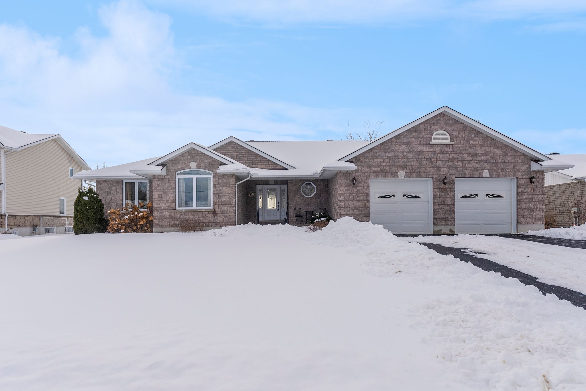 Welcome to this charming 2008-built bungalow located in the heart of Beachburg. Designed with comfort and functionality in mind, this home features a spacious layout perfect for families or those seeking one-level living with bonus space to grow. The heart of the home is the large kitchen, complete with a center island and an impressive walk-in pantry, ideal for cooking and entertaining. The adjacent dining area overlooks the grassy backyard and opens onto a covered wood deck – perfect for outdoor meals and relaxation. A cozy gas fireplace anchors the bright living room, while wide hallways throughout the main floor add to the airy, accessible feel. The generous primary bedroom offers a private retreat with a 3-piece ensuite and a deep walk-in closet. Two additional bedrooms and a full bathroom are also located on the main floor, along with a spacious front entry and a mudroom/laundry room off the attached double garage. The garage includes an extended alcove for extra storage or a workspace. The lower level is reachable by staircases from both the main living area and from the garage – providing a separate entrance if necessary. Downstairs features a large drywalled rec room ready for finishing touches, an additional bedroom, rough-in for a bathroom, and three storage areas including a cold room. Whether you’re looking for main-floor convenience or room to expand, this well-maintained bungalow offers it all-comfort, space, and a peaceful location just minutes from the amenities of Beachburg.