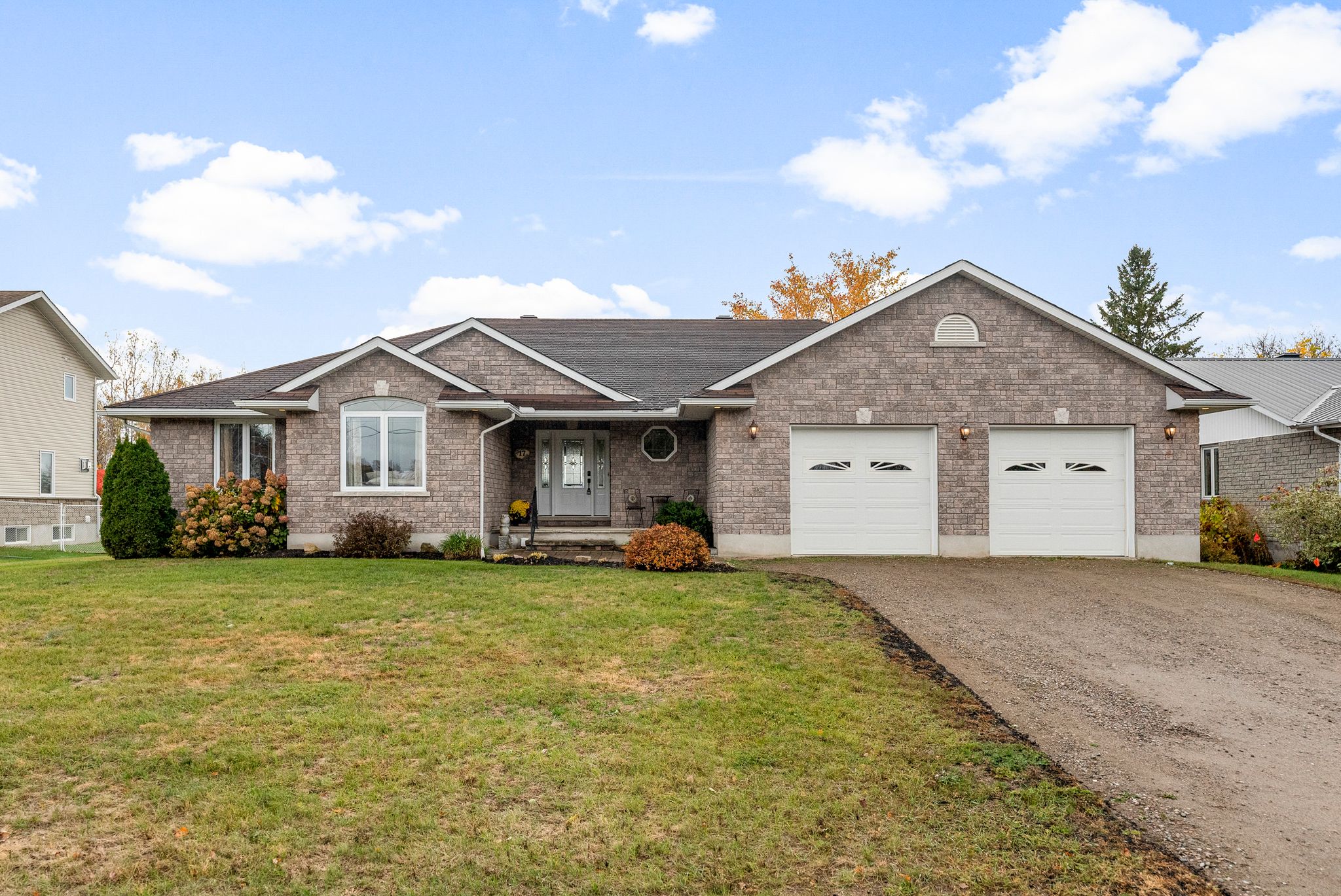 Welcome to this charming 2008-built bungalow located in the heart of Beachburg. Designed with comfort and functionality in mind, this home features a spacious layout perfect for families or those seeking one-level living with bonus space to grow. The heart of the home is the large kitchen, complete with a center island and an impressive walk-in pantry, ideal for cooking and entertaining. The adjacent dining area overlooks the grassy backyard and opens onto a covered wood deck – perfect for outdoor meals and relaxation. A cozy gas fireplace anchors the bright living room, while wide hallways throughout the main floor add to the airy, accessible feel. The generous primary bedroom offers a private retreat with a 3-piece ensuite and a deep walk-in closet. Two additional bedrooms and a full bathroom are also located on the main floor, along with a spacious front entry and a mudroom/laundry room off the attached double garage. The garage includes an extended alcove for extra storage or a workspace. The lower level is reachable by staircases from both the main living area and from the garage – providing a separate entrance if necessary. Downstairs features a large drywalled rec room ready for finishing touches, an additional bedroom, rough-in for a bathroom, and three storage areas including a cold room. Whether you’re looking for main-floor convenience or room to expand, this well-maintained bungalow offers it all-comfort, space, and a peaceful location just minutes from the amenities of Beachburg.